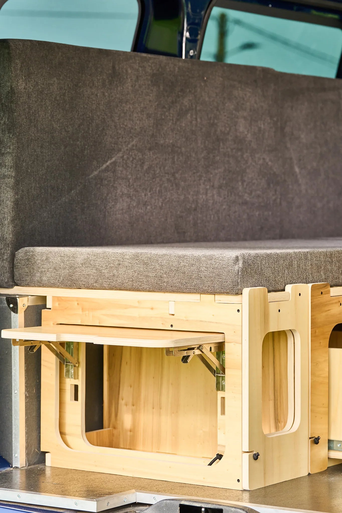 Ensemble Van-Ausbau: Camper Ausziehbett in L-Form + Küchenmodul